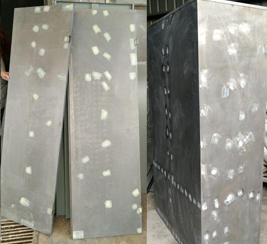 如圖是浦豐柜業(yè)焊接的重型工具柜表面處理過程中的照片。有白點的地方都是厚板焊透后人工打磨凸起的鋼板表面。只有工具柜內(nèi)加強筋和柜體焊透才能保證固體的牢固性。每個焊點再采取汽車表面修補漆面的工藝,進(jìn)行人工修補原子灰,再進(jìn)行表面靜電噴塑處理。