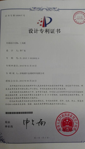 根據(jù)多年來客戶實(shí)際工位的工作習(xí)慣,浦豐柜業(yè)技術(shù)團(tuán)隊(duì)在工具柜、車間工具柜、車間工作臺(tái)、維修工具車的設(shè)計(jì)上不斷總結(jié)創(chuàng)新,于2015年6月24日浦豐柜業(yè)又獲得了國家知識(shí)產(chǎn)權(quán)局專利局頒發(fā)的專利證書。